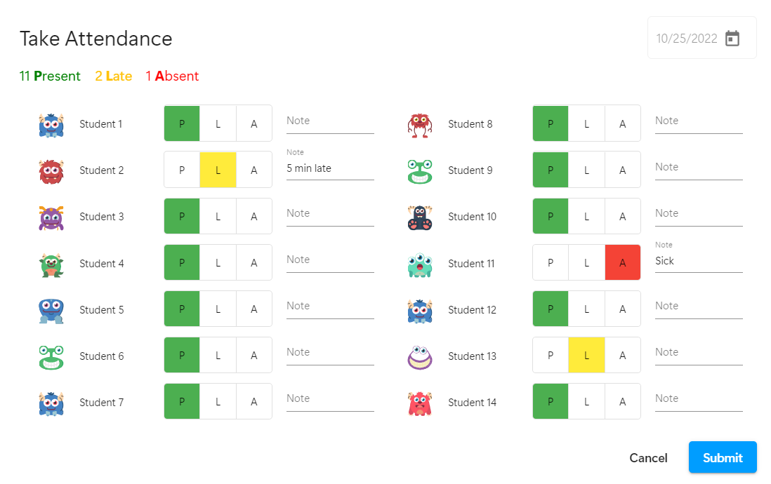 Record and monitor student attendance with just a few clicks.