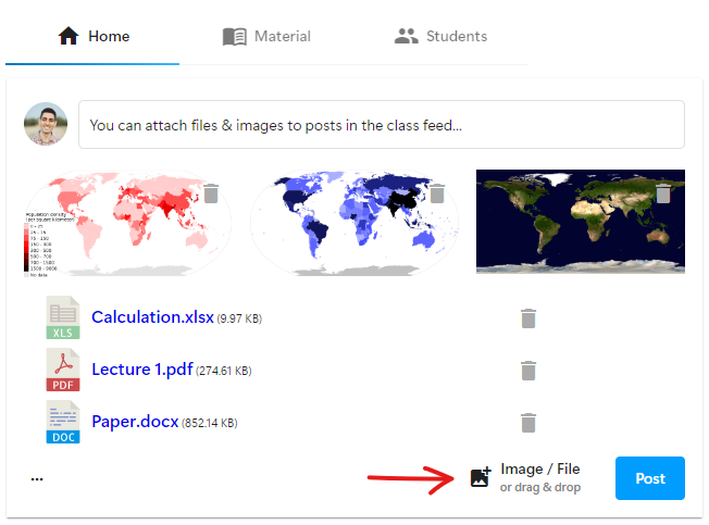 Stay connected with students through integrated messaging and class feed.